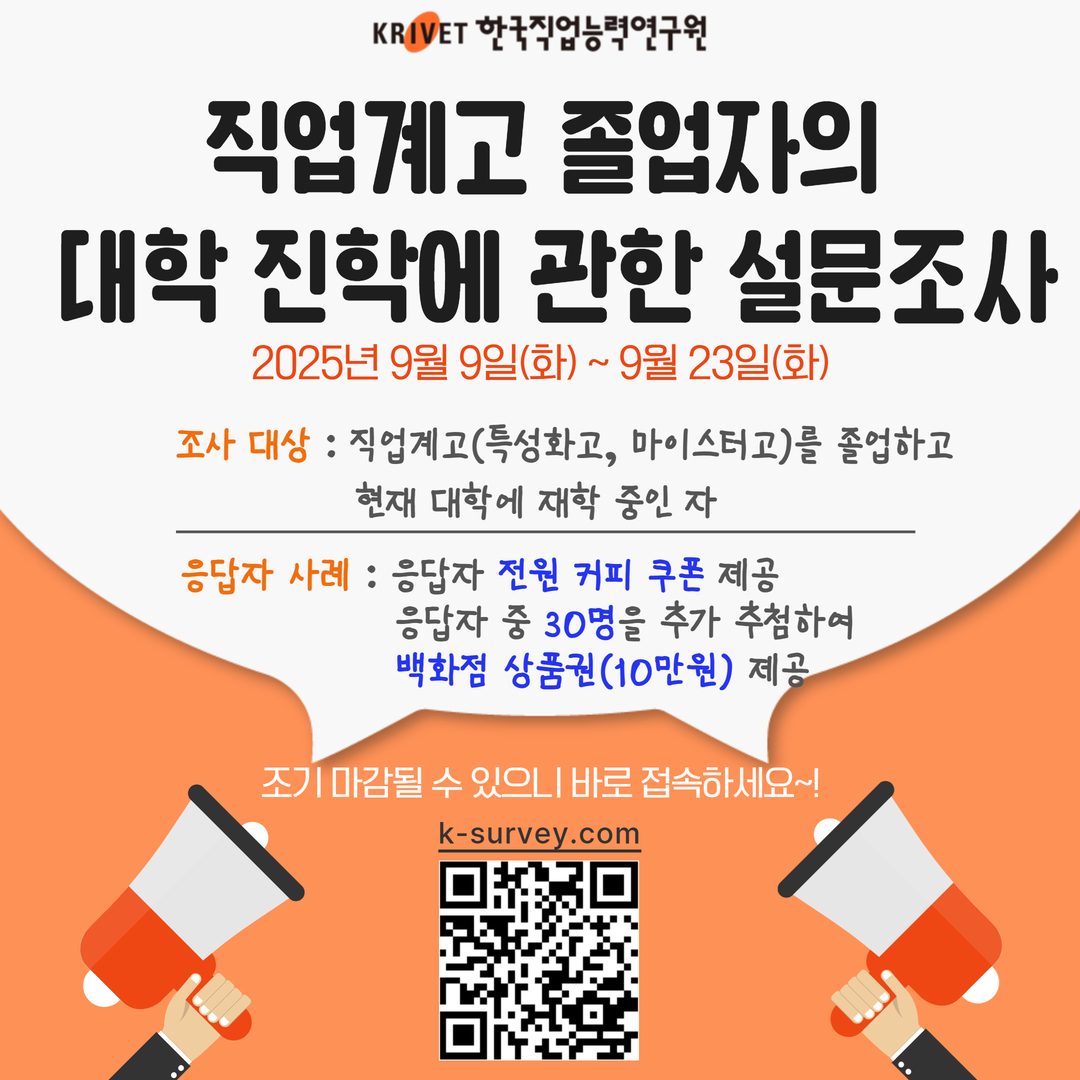 [한국직업능력연구원] 직업계고 졸업자 중 대학 진학자에 대한 설문조사 협조 요청