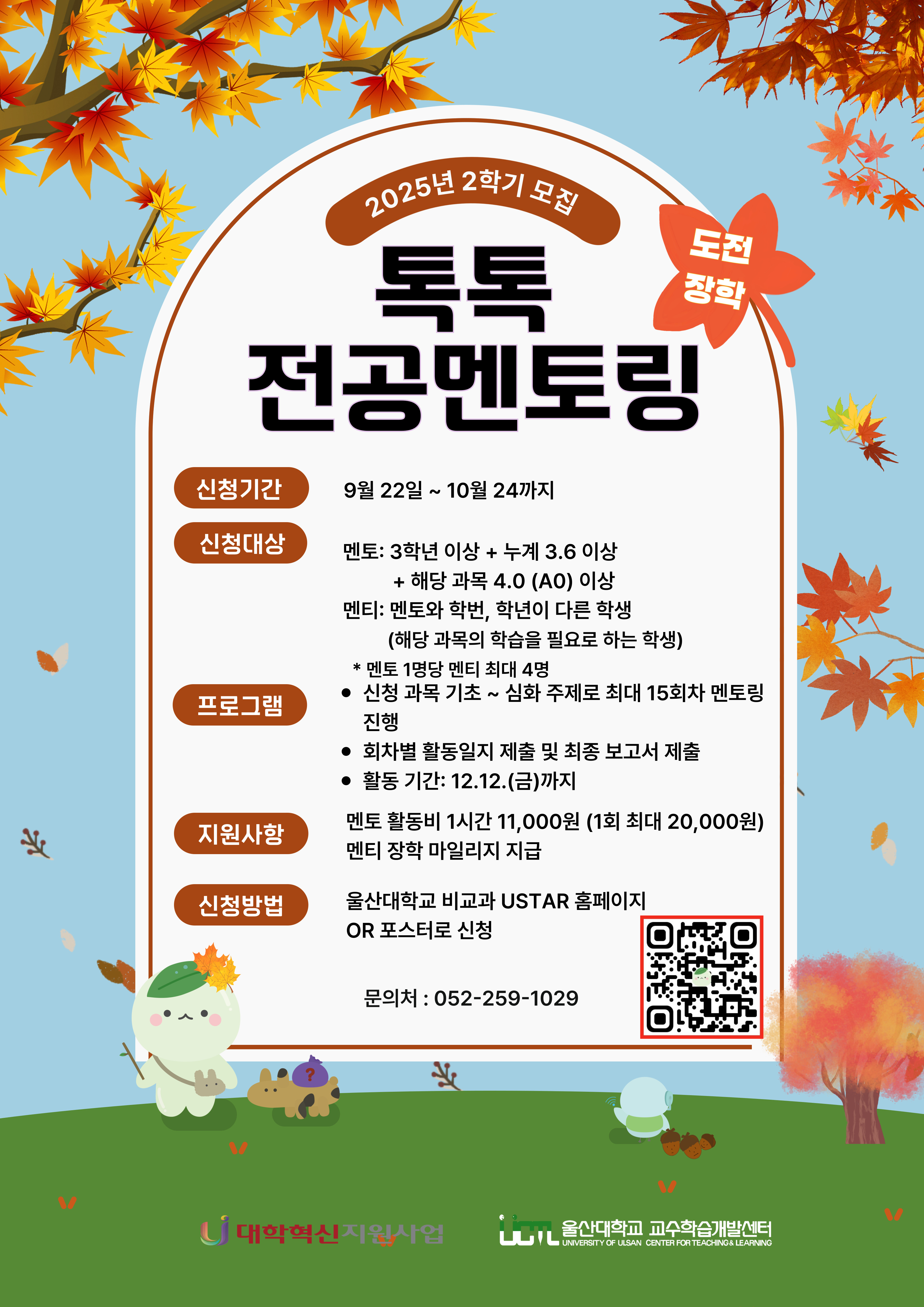 2025학년도 2학기 교수학습개발센터 전공멘토링 지원 및 모집 안내