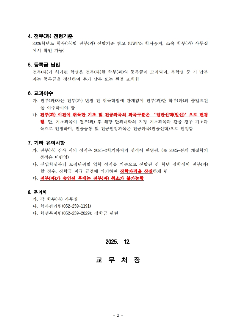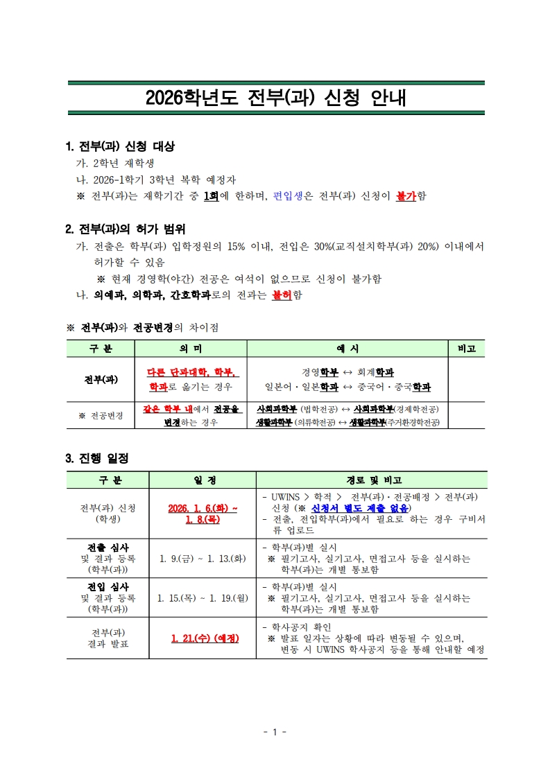 2026학년도 전부(과) 안내